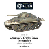 Sherman V Duplex Drive (no screens)Contains 1 Resin vehicle with one random British Tank Commander This vehicle can also be used in games of Achtung Panzer!, the game of close-quarters tank-on-tank combat, its rules can be found in the Achtung Panzer! rulebook. Models supplied unassembled and unpainted