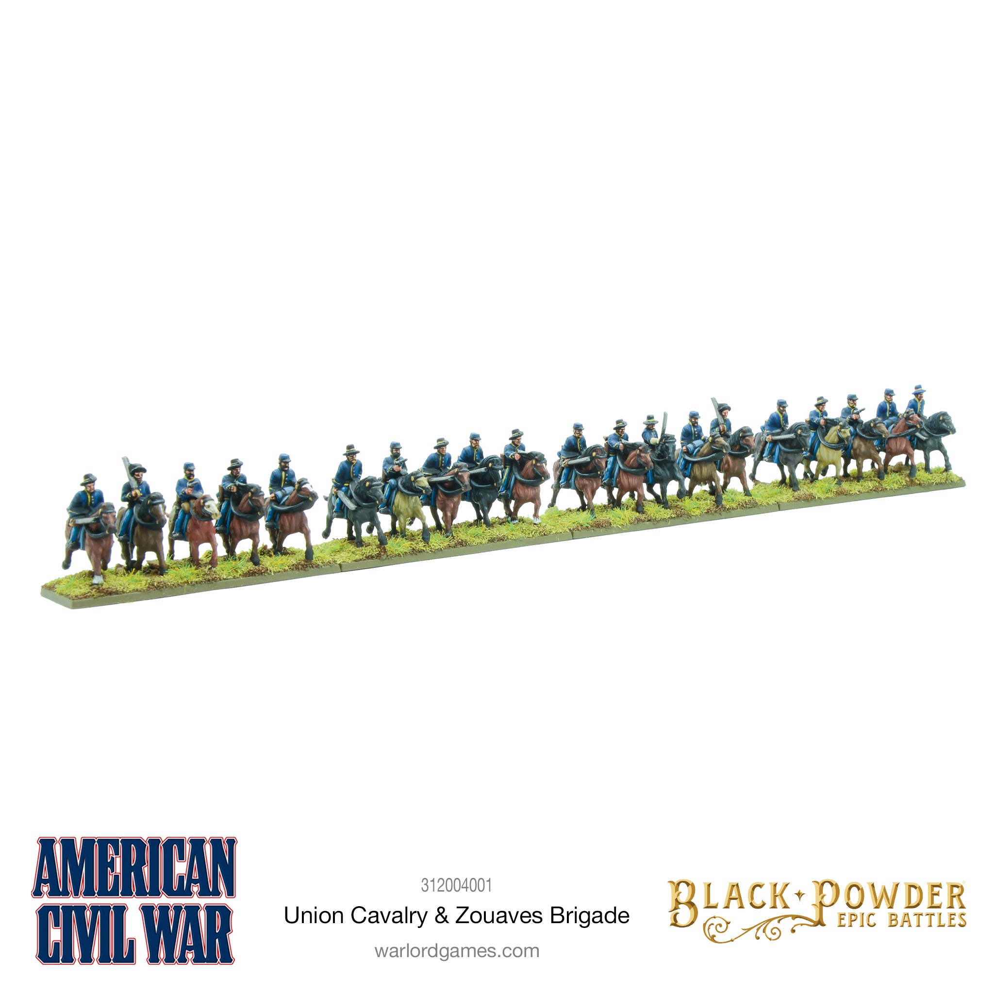 This plastic set provides enough models to field a complete Union brigade comprising one zouaves regiment of 100 men, a regiment of cavalry, a regiment of dismounted cavalry and a regiment of skirmishers.