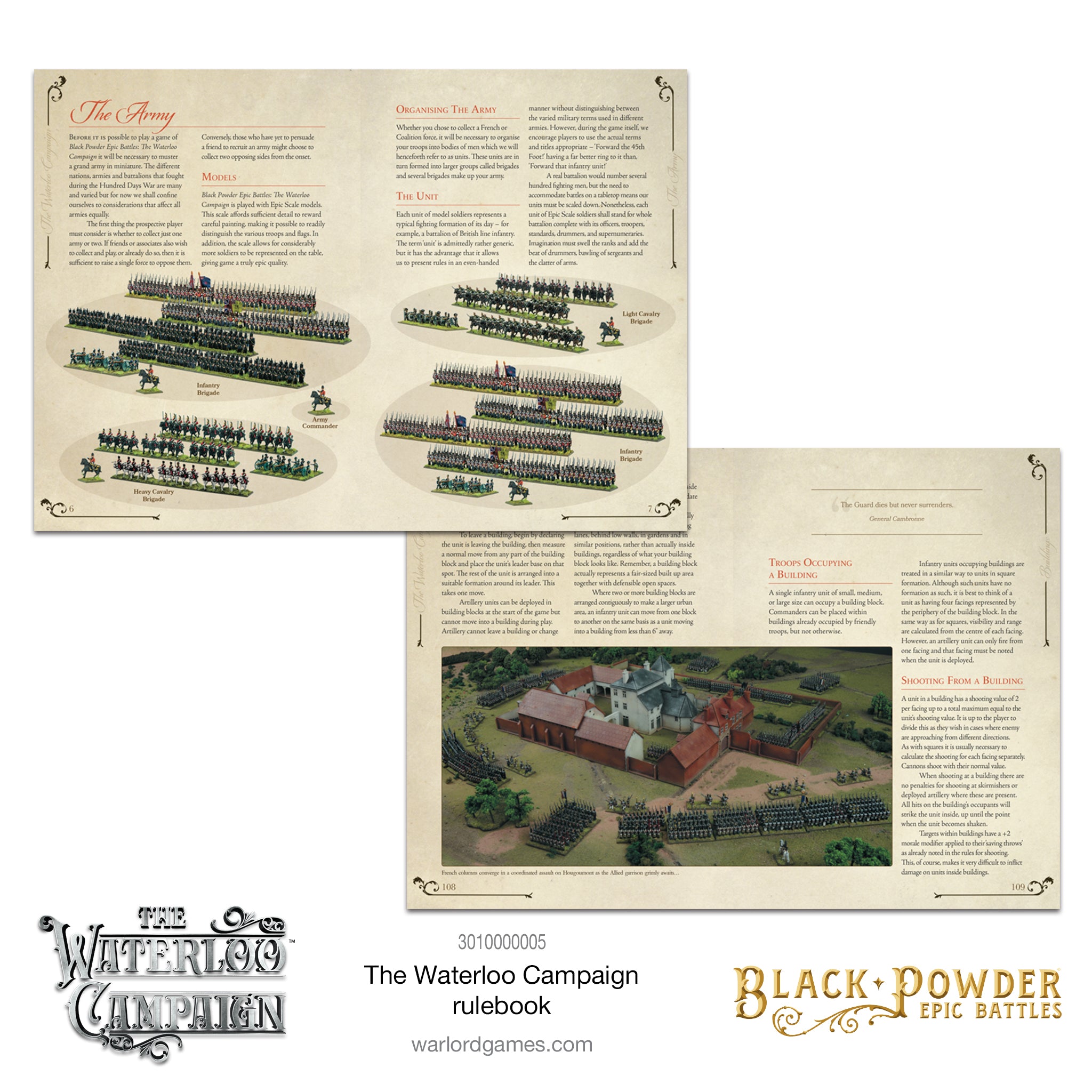 Based on the award-winning Black Powder rules system, Black Powder Epic Battles allows you to refight the key engagements of the Waterloo Campaign on a huge scale, with period specific additions that capture the tactics, conditions, and prominent personalities of the Napoleonic Wars.