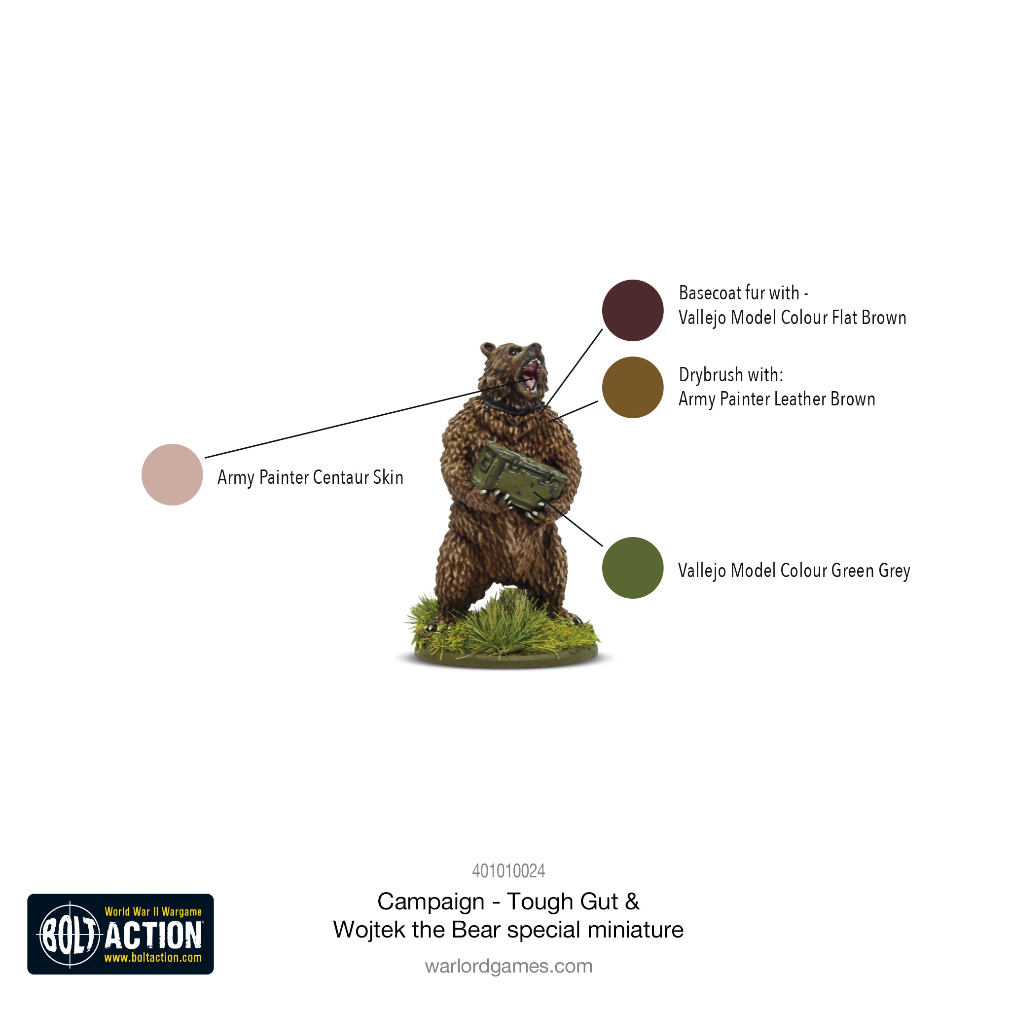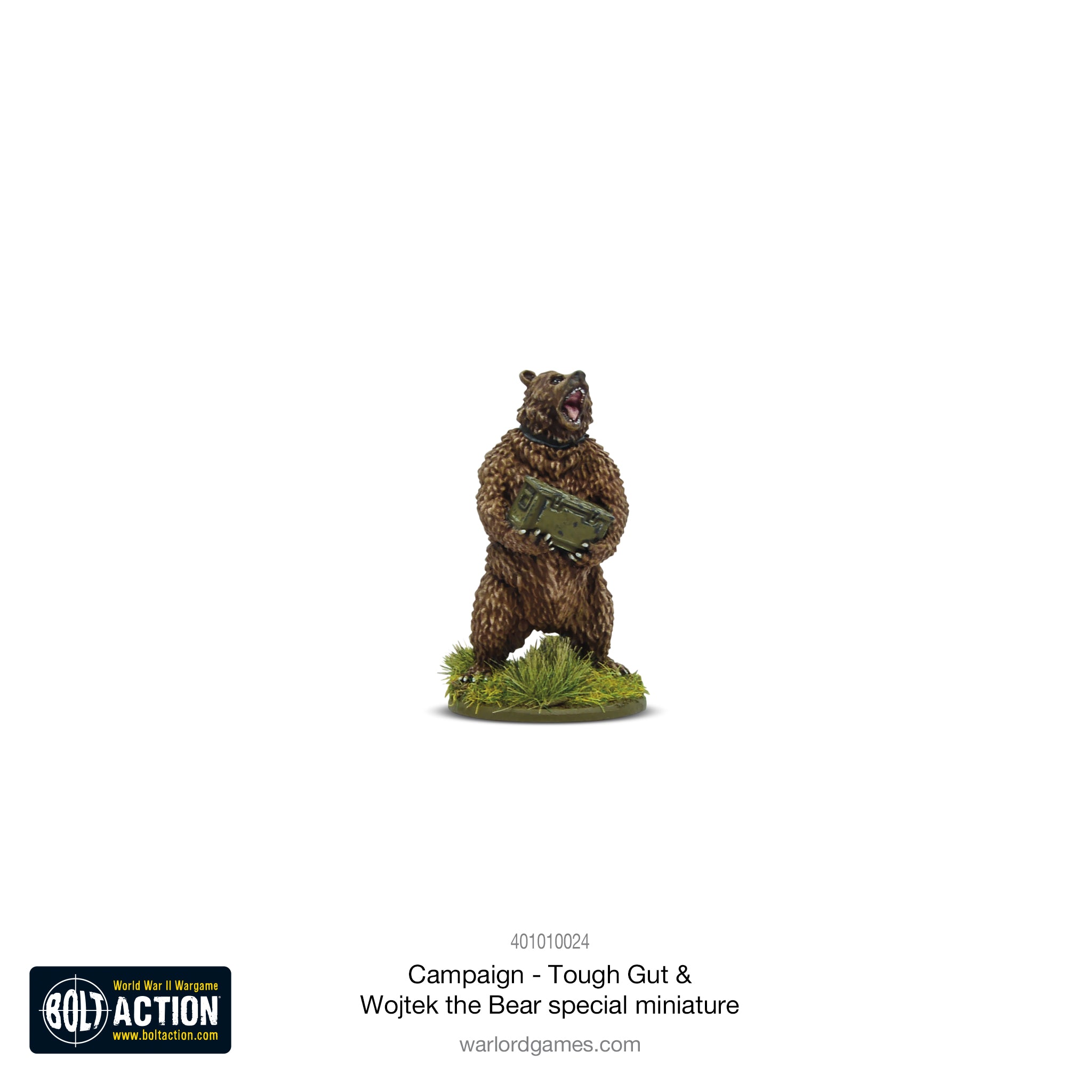 Webstore Exclusive Book Miniature: One of the most endearing stories of the war was that of Wojtek the Bear – a Brown Bear cub adopted by Polish soldiers in Persia. Fed cigarettes and beer, Wojtek would march like a soldier and wrestle with his human friends. Legend has it that Wojtek carried crates of ammunition to his comrades during the battle at Cassino and for this effort he was promoted to the rank of Corporal. Now you can field Corporal Wojtek in your games of Bolt Action!