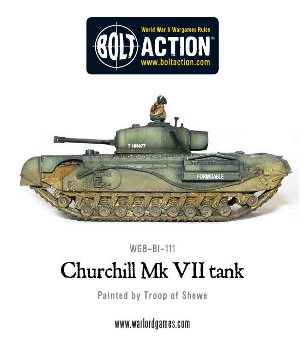 In games of Bolt Action, the Churchill VII is a super-heavy tank armed with a medium anti-tank gun, and can be included in any armoured platoon.