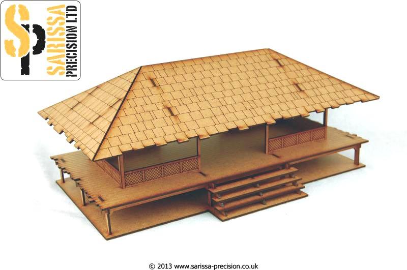 Laser cut 2mm MDF with Laser etched detail, removable roof and interior detail. Kit supplied unassembled and unpainted. Measures approx. L210xW300xH130