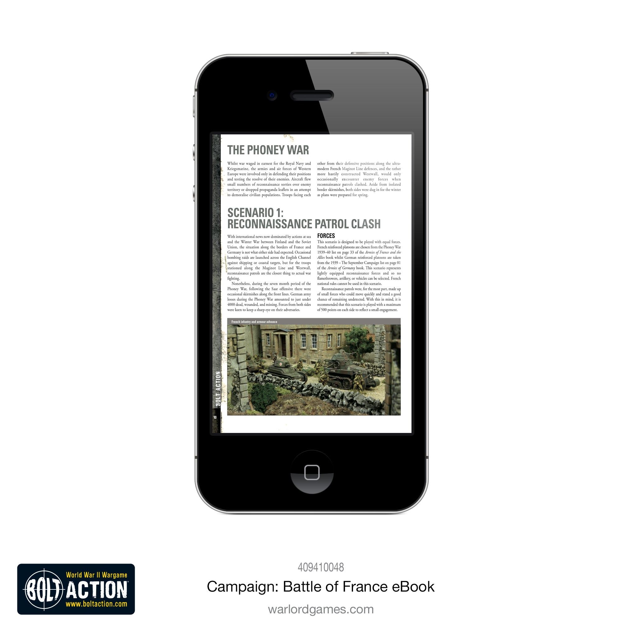The Battle of France saw German forces sweep across the Low Countries and towards Paris, crushing Allied resistance in just six weeks. From Fall Gelb and the British withdrawal from Dunkirk to the decisive Fall Rot, this new supplement for Bolt Action allows players to take command of the bitter fighting for France, and to refight the key battles of this campaign. Linked scenarios and new rules, troop types, and Theatre Selectors offer plenty of options for novice and veteran players alike.