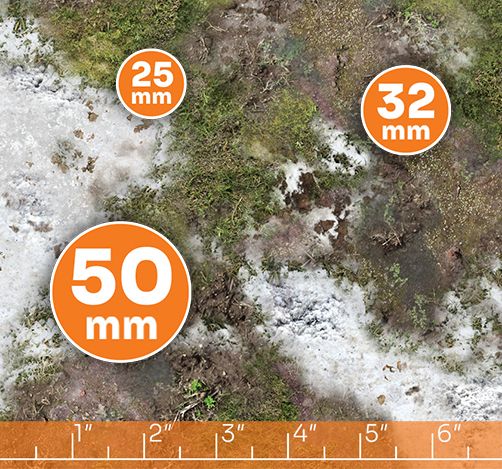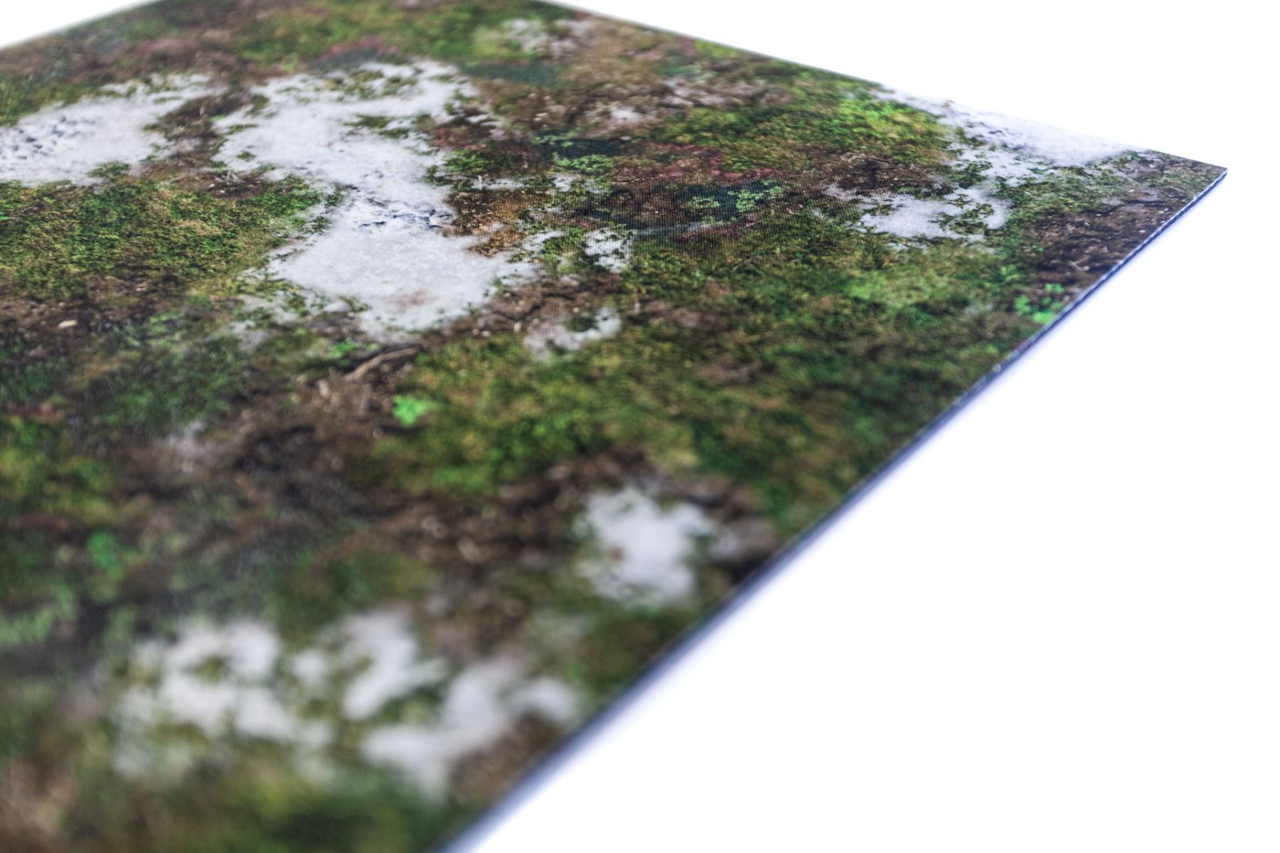 Bring your battlefields to life with this high-quality wargaming mat. The design, featuring a combination of greenery and earth with a light scattering of snow, is ideal for 28mm wargaming and will complement a variety of basing styles. It is perfect for fighting games in all historical periods using Bolt Action, Black Powder, Pike & Shotte or Hail Caesar, as well as fantasy games such as Warlords of Erehwon.