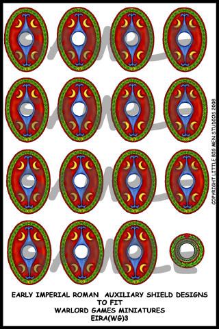 This full-colour die-cut transfer sheet feature 15 oval Auxiliary shield design and 1 round buckler design.
