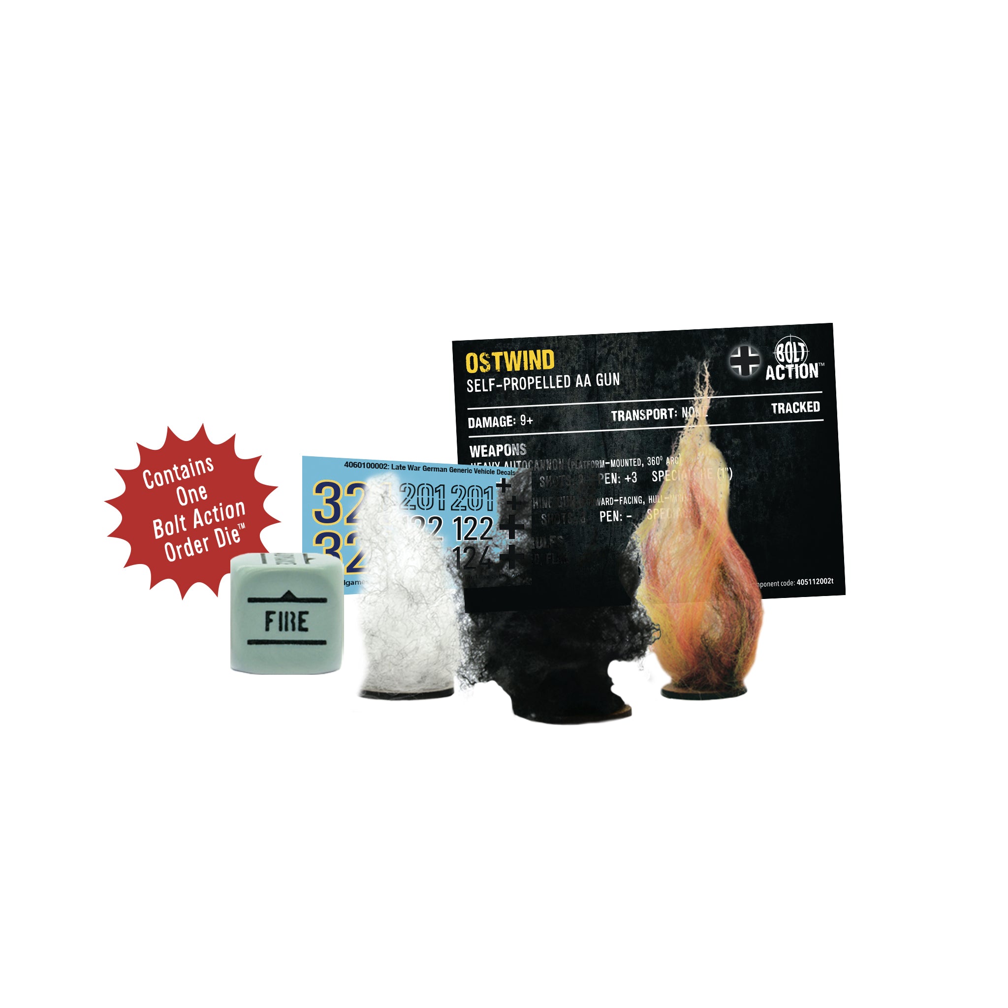 Contains one Flakpanzer IV with Ostwind Turret, cast in resin & metal, with waterslide decal sheet, Bolt Action Order Die, Bolt Action: Third Edition vehicle stat card, and vehicle damage markers.