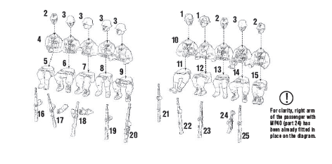 This product is a plastic frame of components – what you see on the frame is what you get. It does not come with any additional bases, decals or instructions.