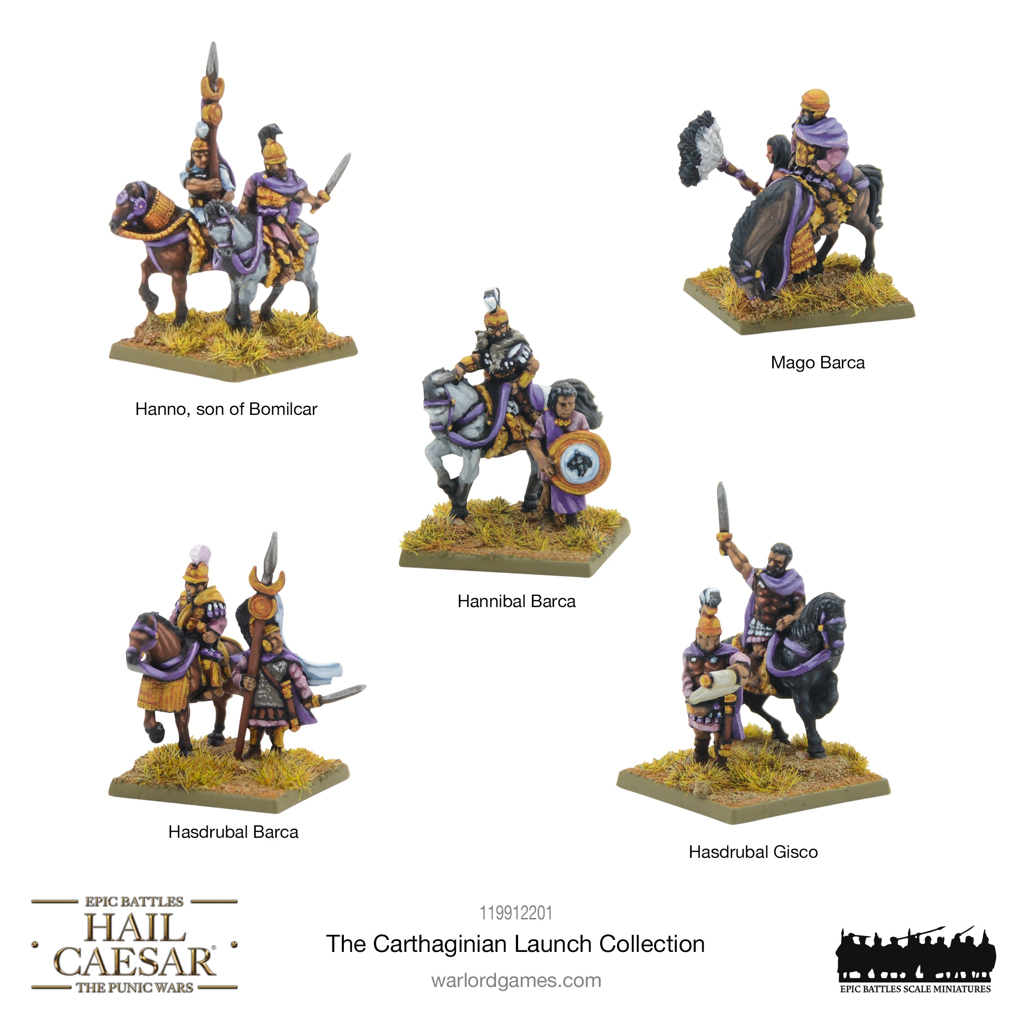 Take to the field for the glory of Carthage with the Carthaginian Launch Collection for Hail Caesar Epic Battles! This fantastic bundle is the best way to amass your Carthaginian army as quickly and easily as possible, to defend the empire against the Roman menace! The Hannibal Barca’s Carthaginian Army boxed set provides a great foundation for your force, while the Carthaginian and Allied division boxes give you even more troops for the fight, allowing you to show off the diversity of the Carthaginian army. No force should be without elephants, and this bundle has them aplenty, both in the army box and their own War Elephants set, while commanders and casualties complete the collection, giving you a mighty force to dominate the Mediterranean!