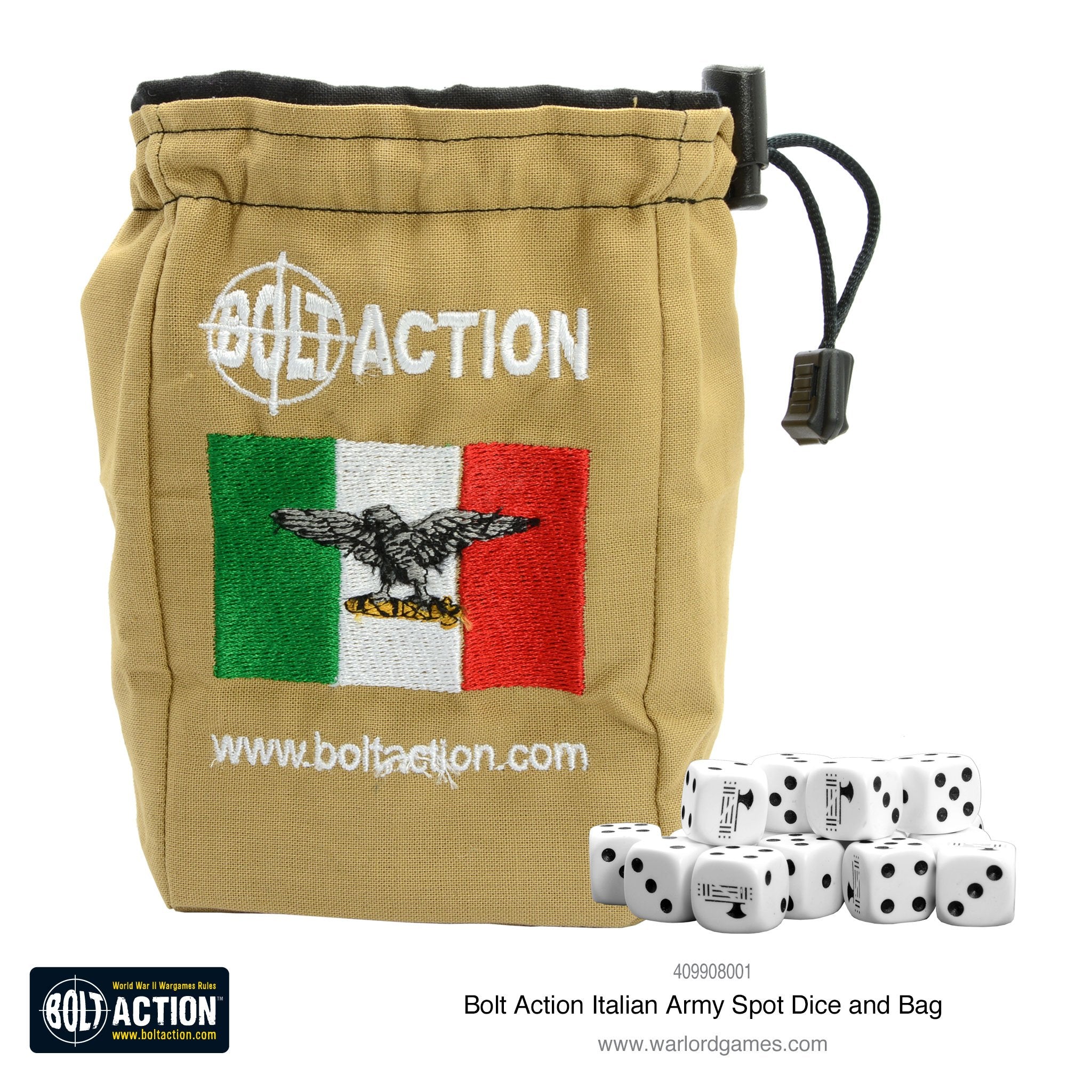 You get the Italian Army dice bag and one pack of 12 Italian Army dice.