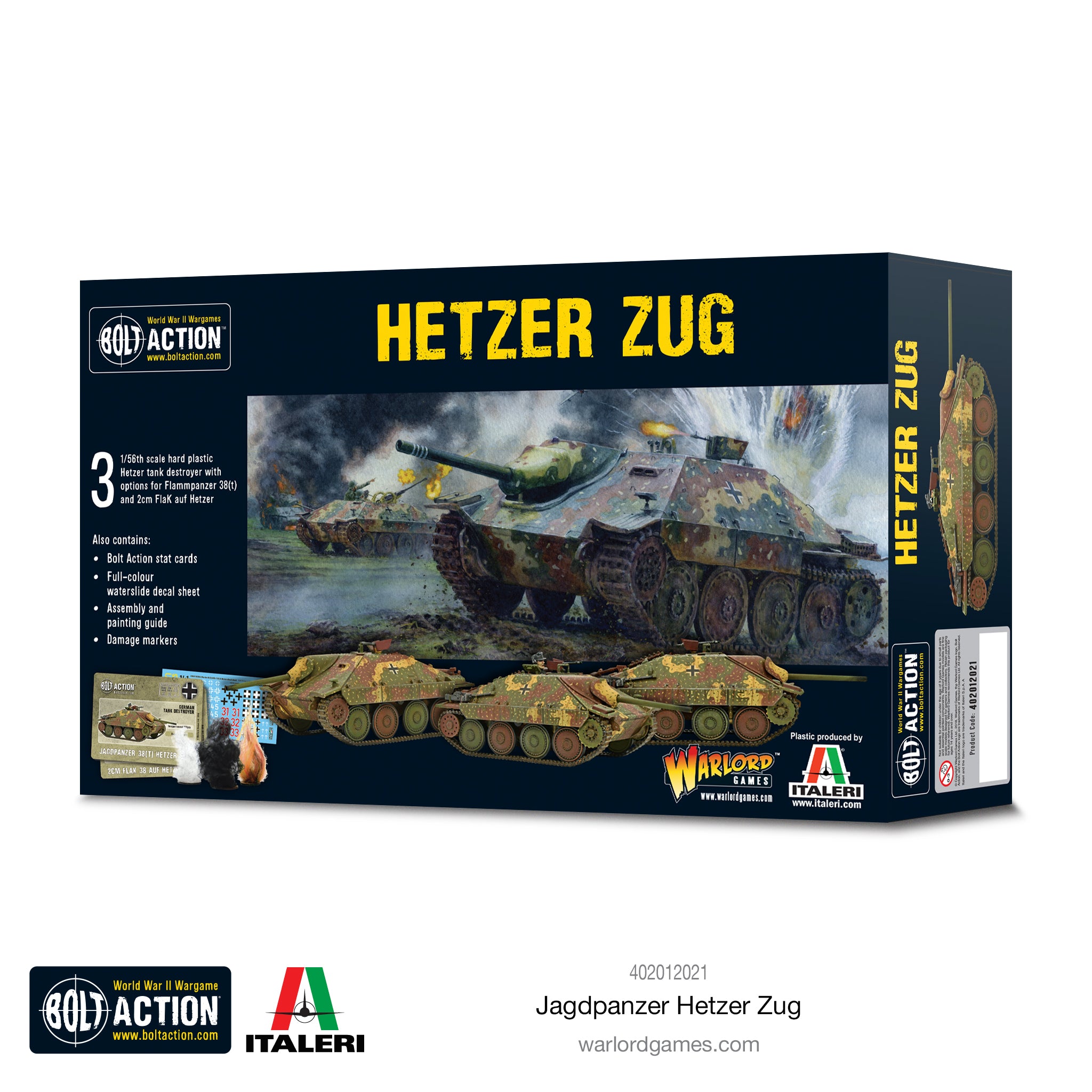 The mid-production Hetzer, Late production Hetzer, the fear-instilling flammpanzer 38(t) and the extremely rare 2cm FlaK auf Hetzer reconnaissance/AA. This ZUG box set is the perfect opportunity to create the different variants that the Germans have developed during the war. Need a dedicated anti-tank? Use either of the mid or late production Hetzers, too many infantry on the field? Flammpanzer! Pesky planes harassing your forces? Bring the 2cm FlaK auf Hetzer reconnaissance/AA and blow them out of the sky!