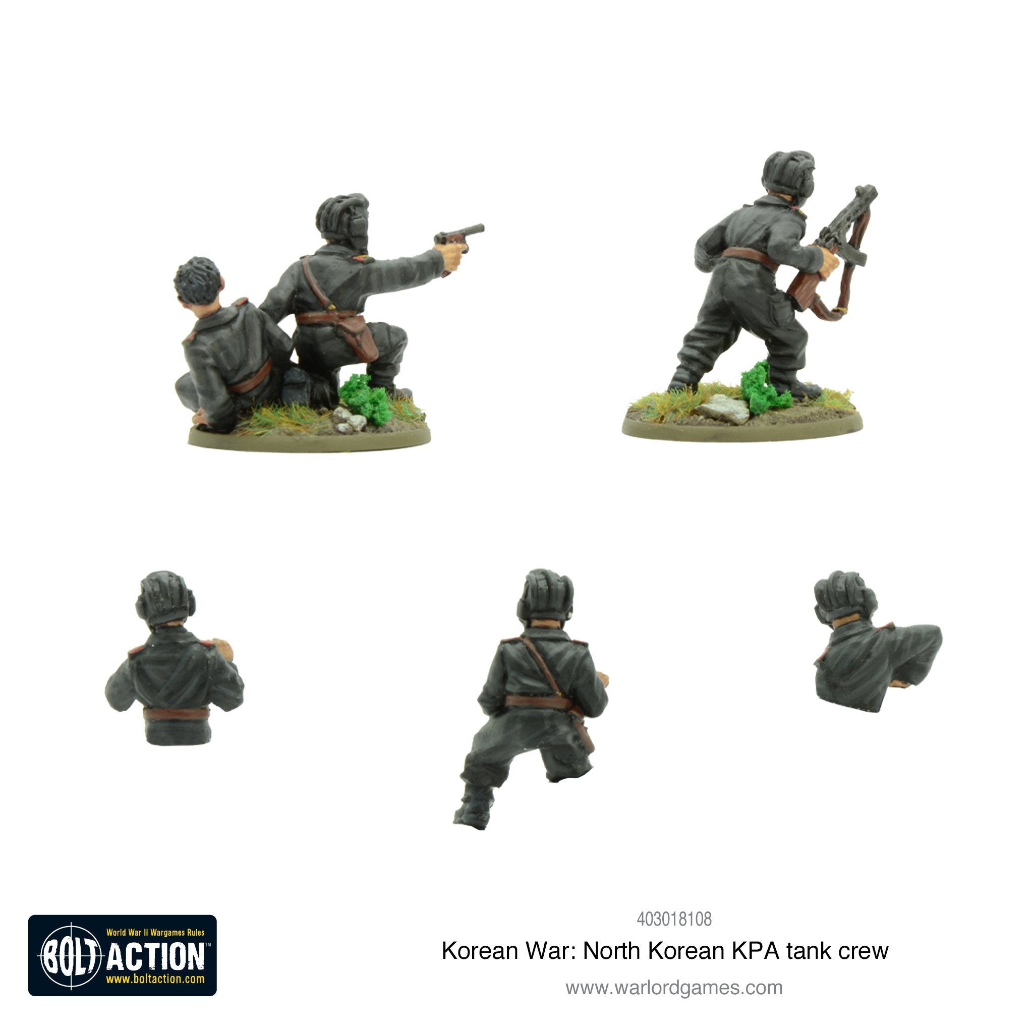 The KPA Tank Crew kit contains six metal miniatures. Three are mounted, and therefore ideal for customising tanks for your Korean Peoples Army force. The three remaining miniatures can act as objective markers in a regular game, or better yet as representations of your experienced crew escaping from their brewing tank in a campaign game where keeping your crew skills is vital (pages 25-32 Tank War).