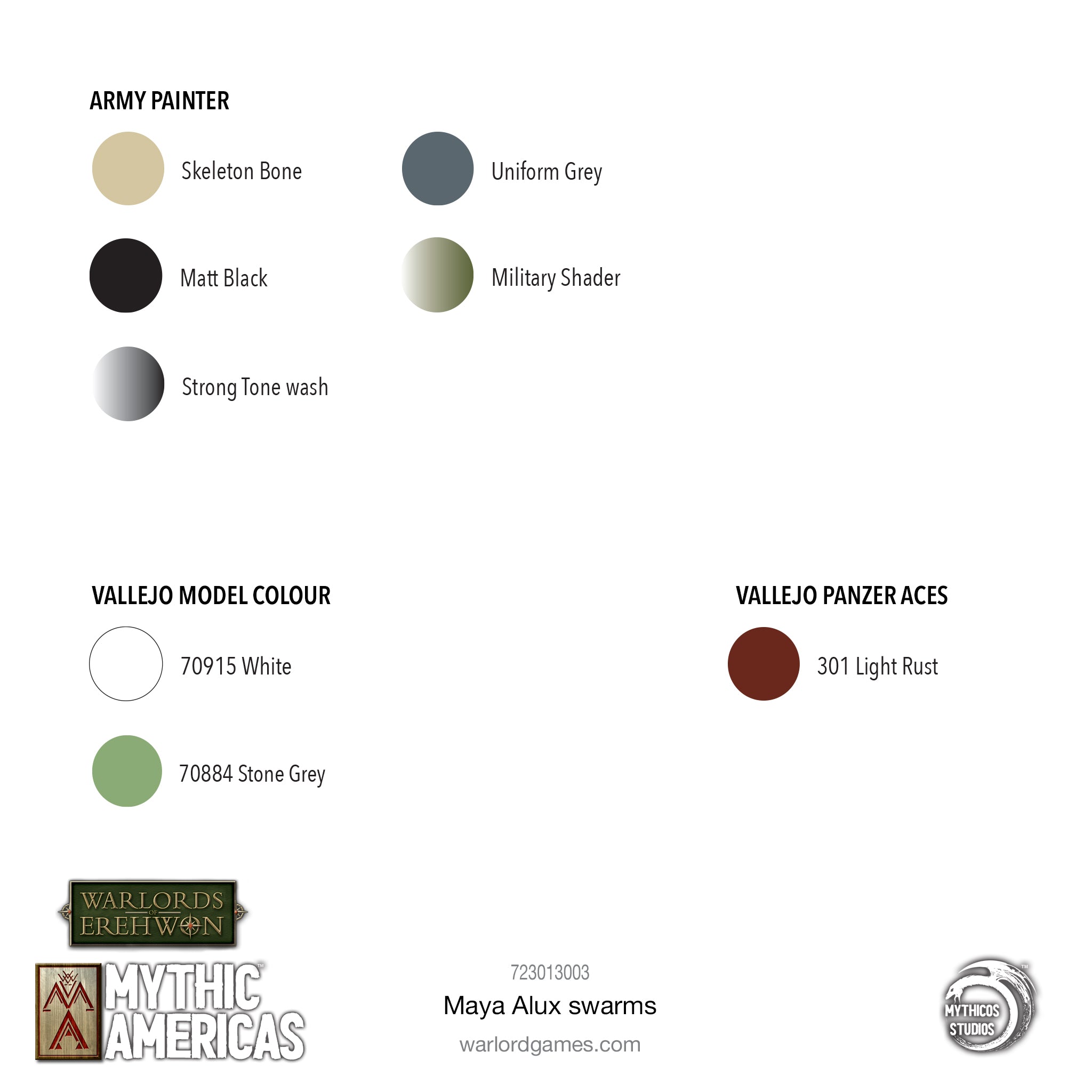 The mischievous Alux are small spirits that make the Maya farms and forests their home. Using cunning, trickery and illusion, they harass and frighten the enemy. Even the most heavily armed warrior can fall prey to their mind-bending tricks, sowing fear and discord in even the most disciplined.