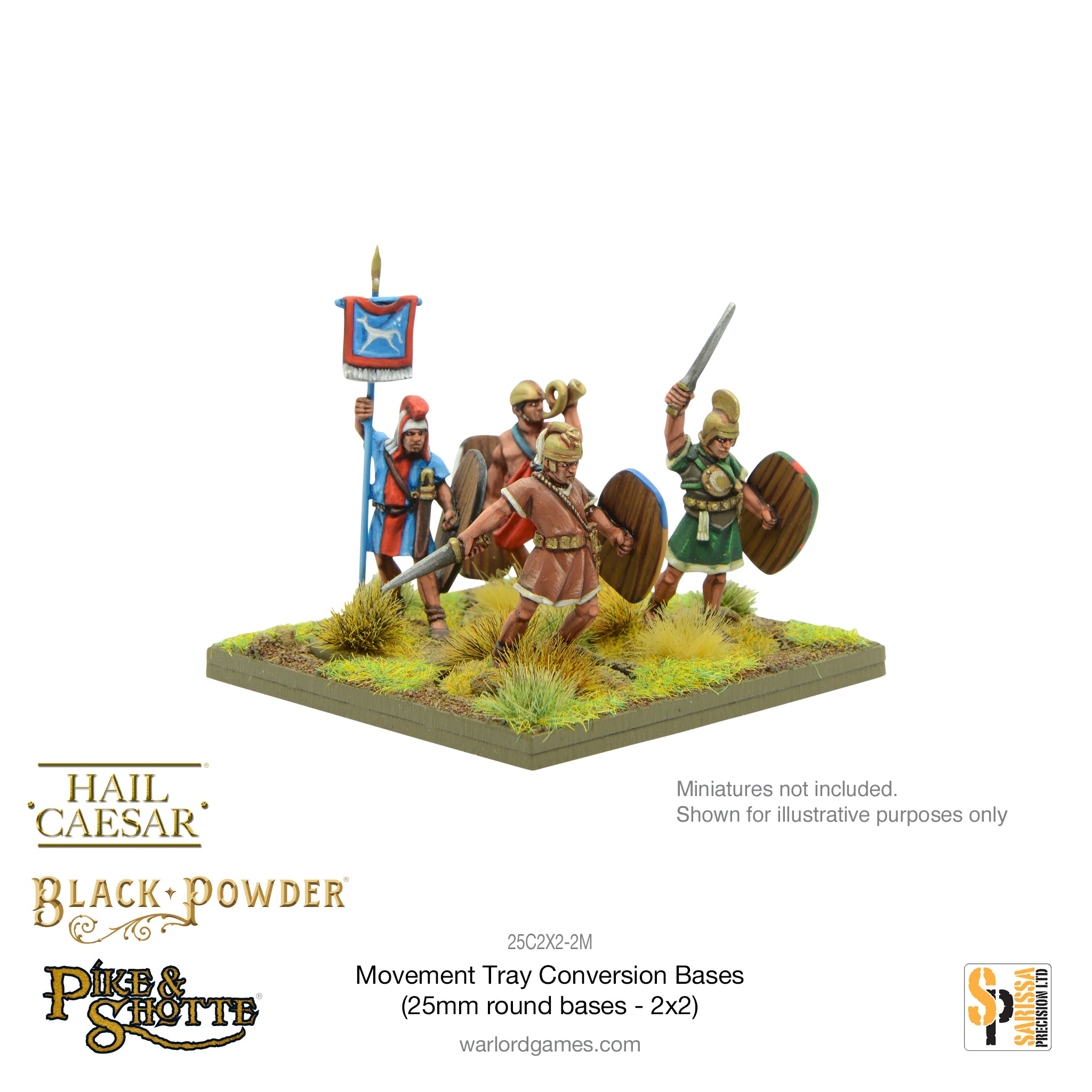 One laser-cut MDF conversion tray consisting of MDF upper frame and lower base to hold 25mm diameter round bases. These trays allow you to use your round-based models in a ranked fashion.