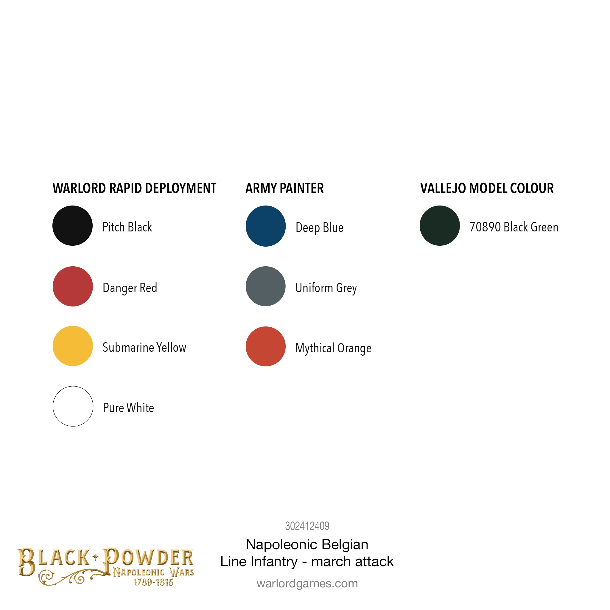 Box contains 24 Warlord Resin Belgian Line Infantry miniatures (includes command group of officer, drummer, ensign and NCO), full-colour flag sheet and plastic bases.