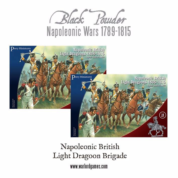 Perry Miniatures bring the Light Dragoons to life with their box of 14 mounted plastic figures - all you need for a complete Black Powder Regiment, or Brigade if you have a 2nd box.