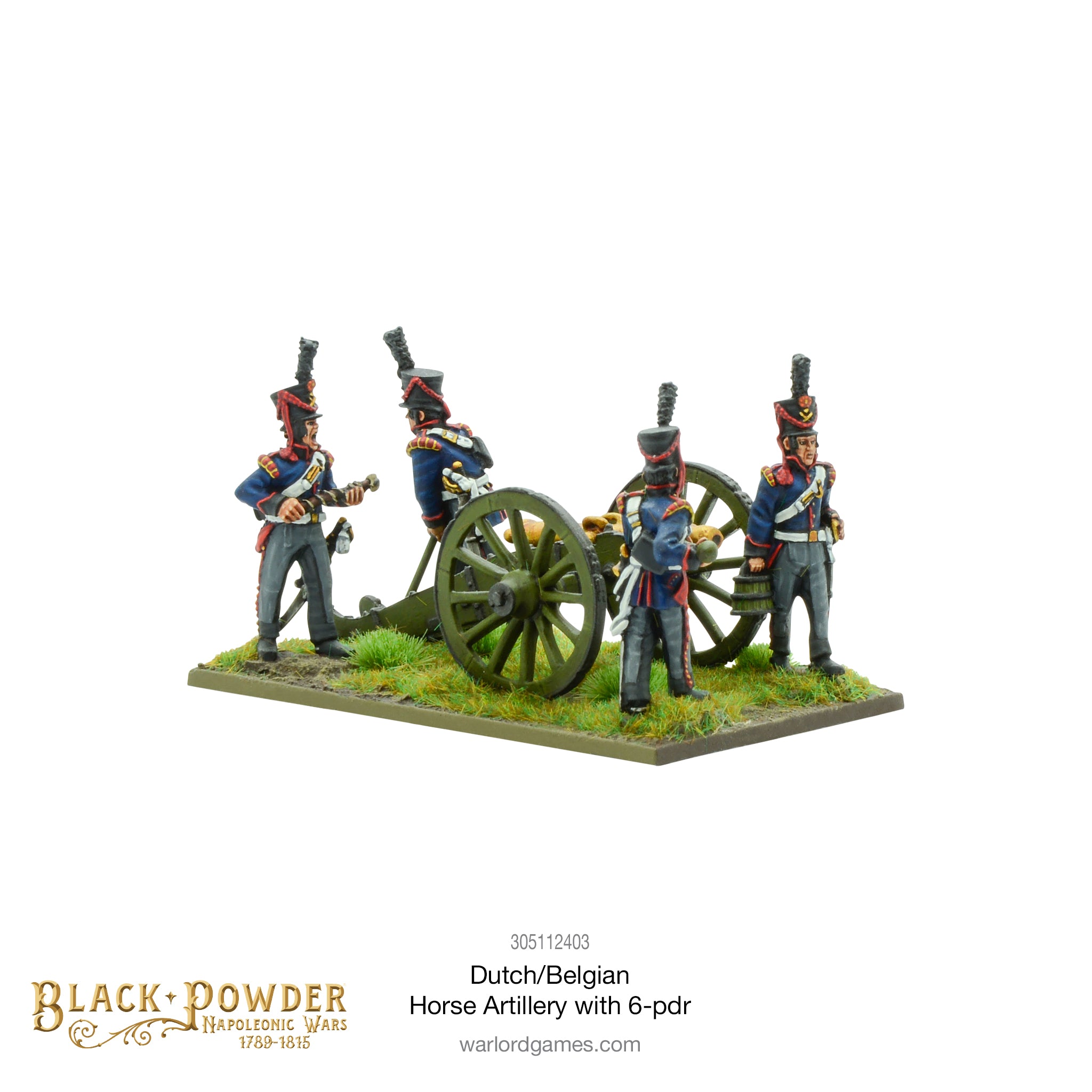 During the Hundred Days campaign the forces of the Kingdom of the Netherlands provided foot and horse artillery batteries for each infantry and cavalry brigade they fielded. Whether foot or horse, each battery has eight guns – six 6-pdrs and two 5.5-inch howitzers.