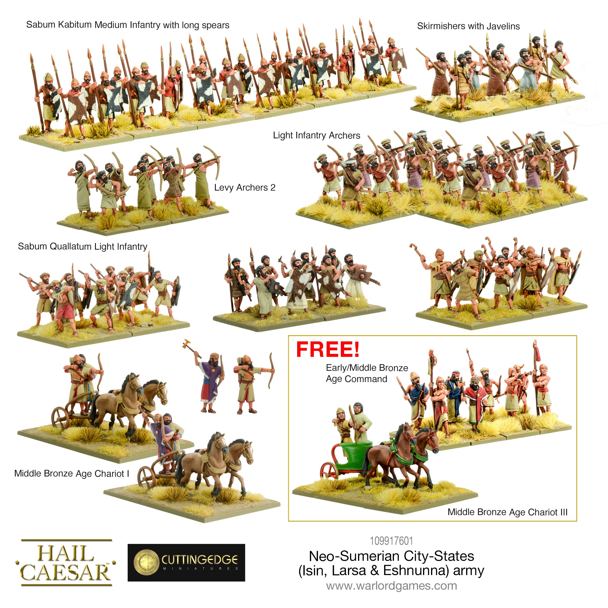 We've put together this fantastic army deal to get you started with the ancient Neo-Sumerian city-states. This bundle gives you 88 infantry and 3 chariots - the perfect starting point for a Bronze Age army!