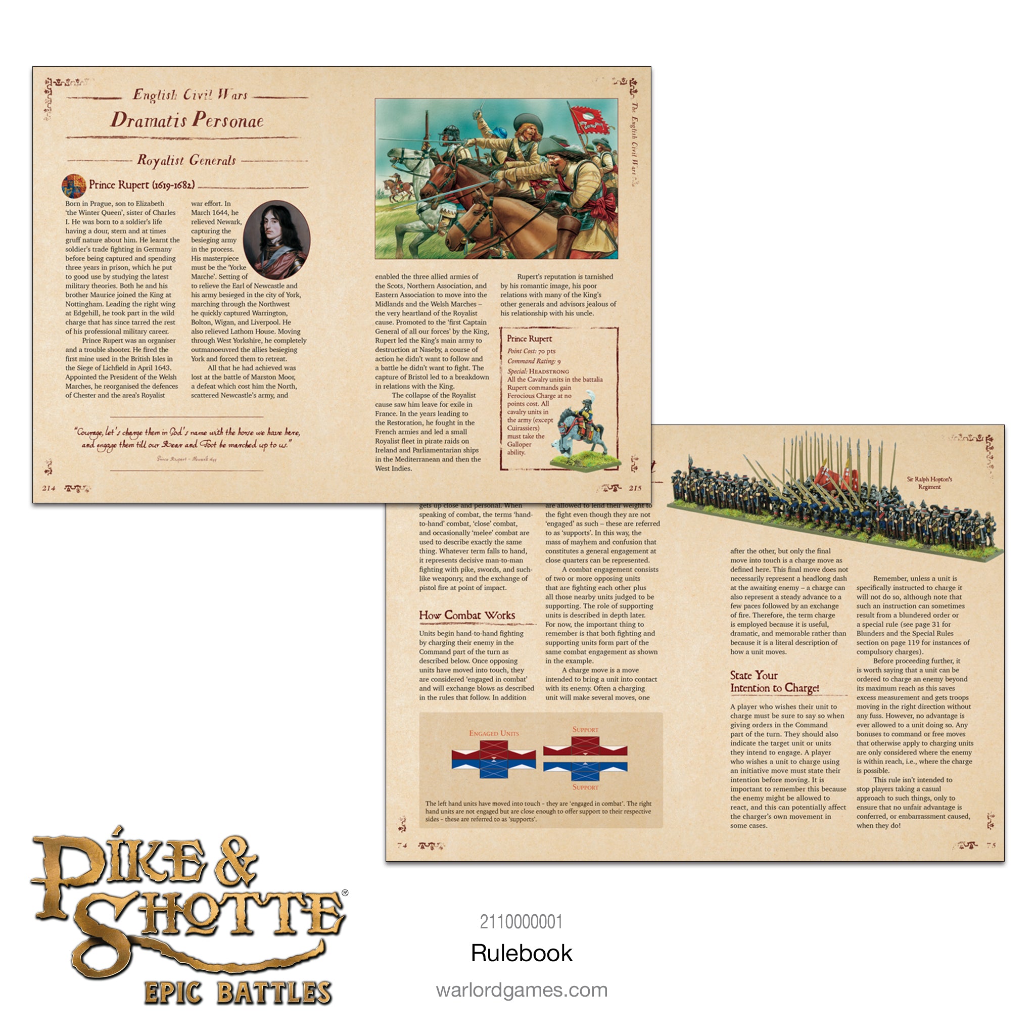 The Pike & Shotte Epic Battles rulebook provides you with all the information you need to refight the wars that raged across Europe in the seventeenth century in an epic scale, with period specific additions that capture the tactics, conditions, and prominent personalities of both these cataclysmic conflicts. This book is in A5 size.