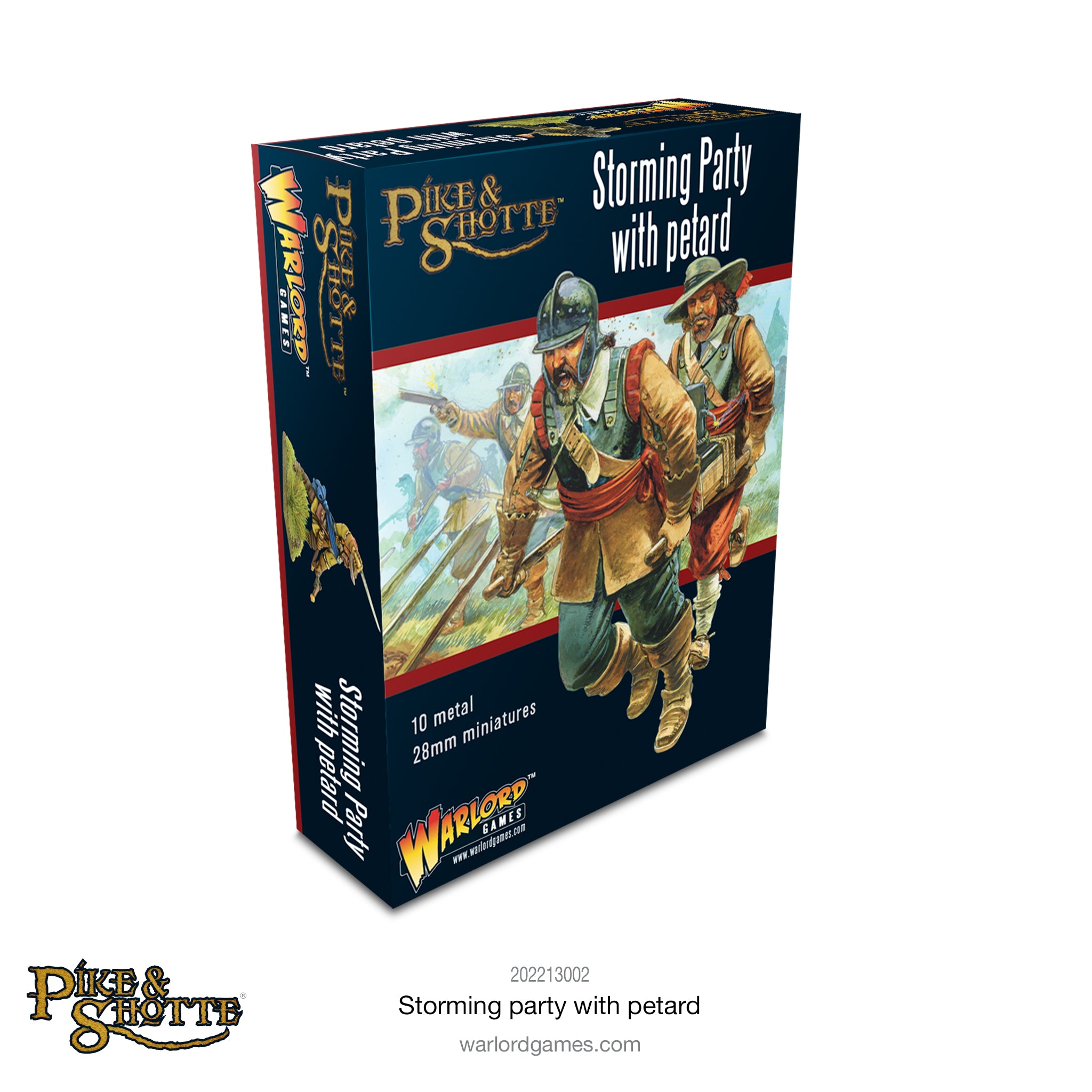 Box contains 8 metal dismounted cavalrymen and two-man petard team.