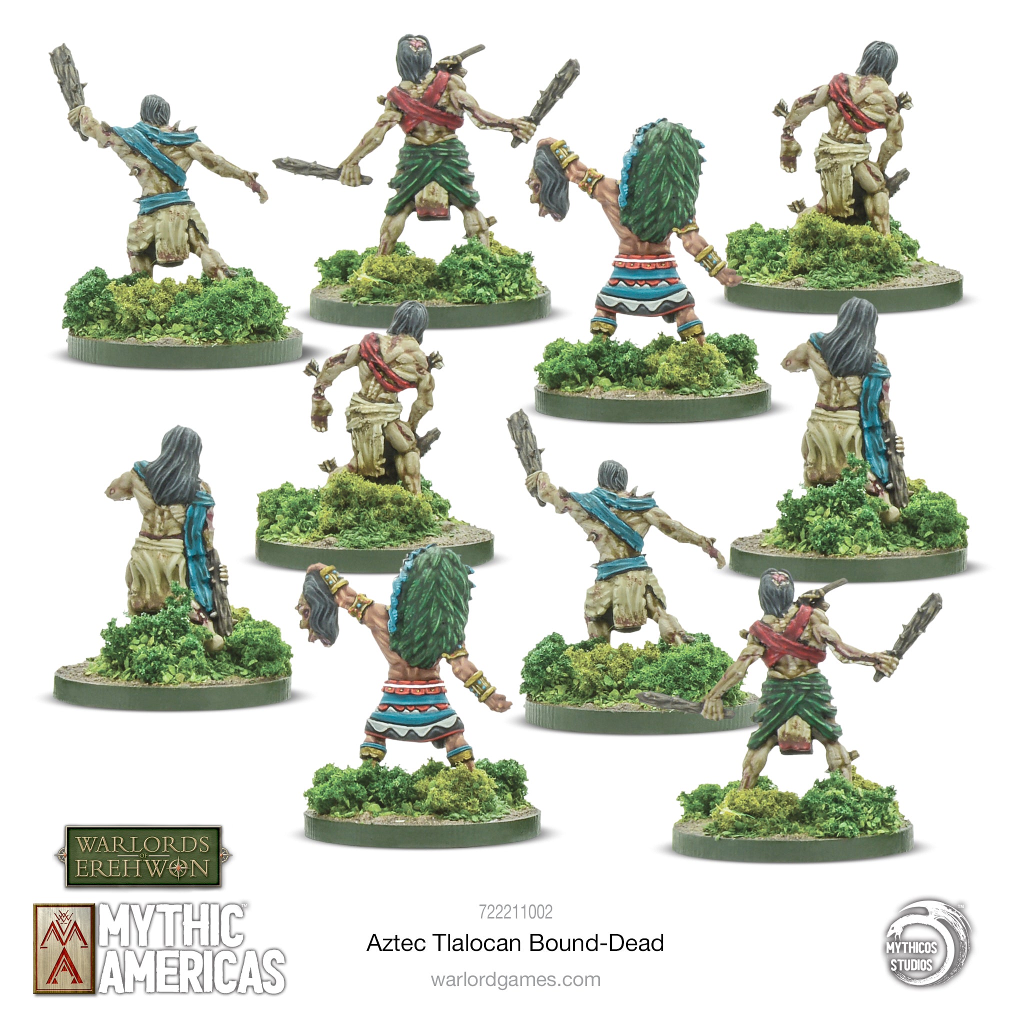 Tlalocan-Bound Dead \tlä-'lō-kən\– The Tlalocan-Bound Dead are the core undead warrior units for the warband. With no real weapons and lackluster stats these undead soldiers will benefit greatly from buff spells. When benefiting from Power Siphon the standard Bound Dead unit become powerful attackers or a hardy objective holder when enhanced with the Armor of the Gods.