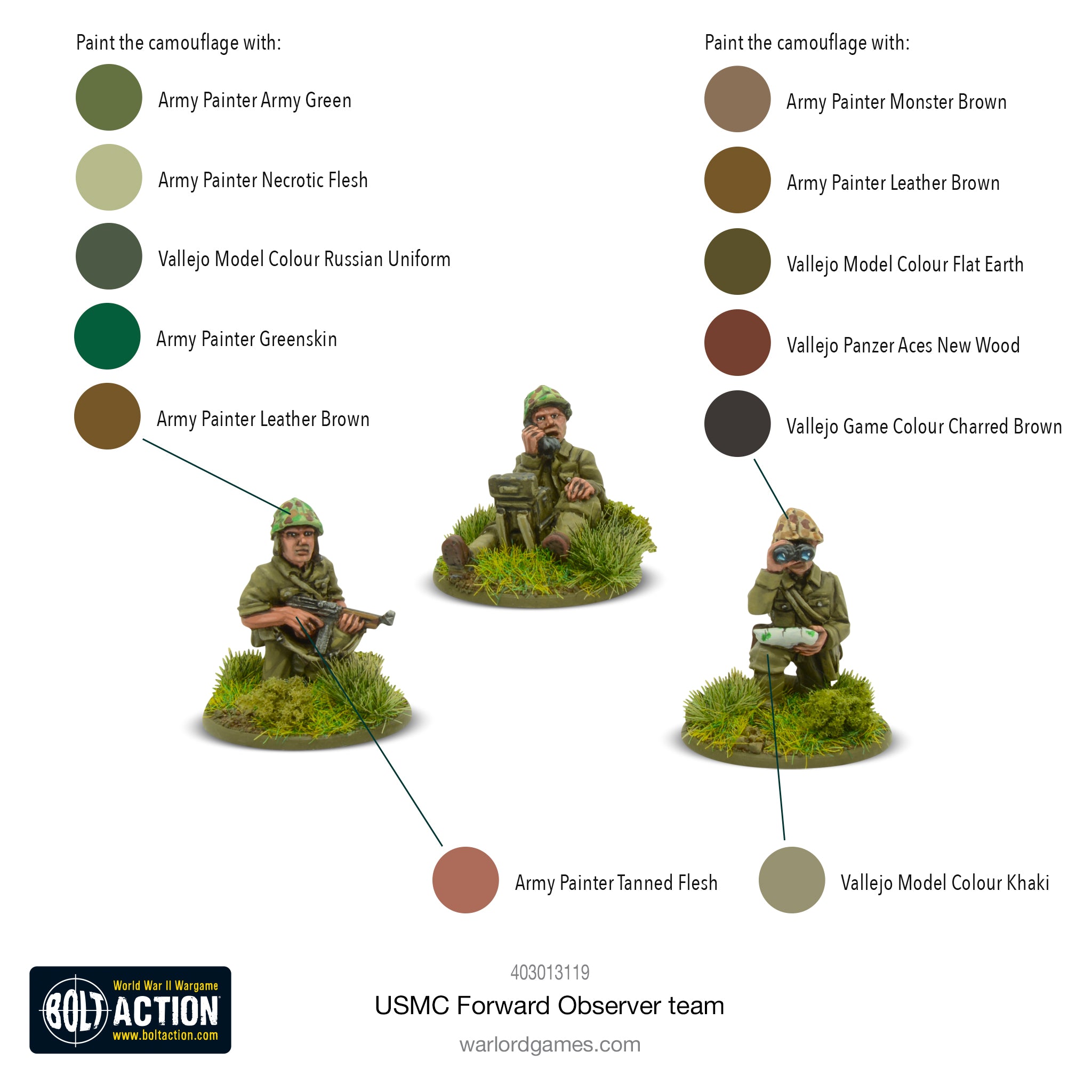 Forward observers are liaison officers responsible for coordinating the attack of aircraft strikes or heavy artillery batteries firing from far behind the battle lines. They are likely to be accompanied by a radio operator and other immediate attendants.